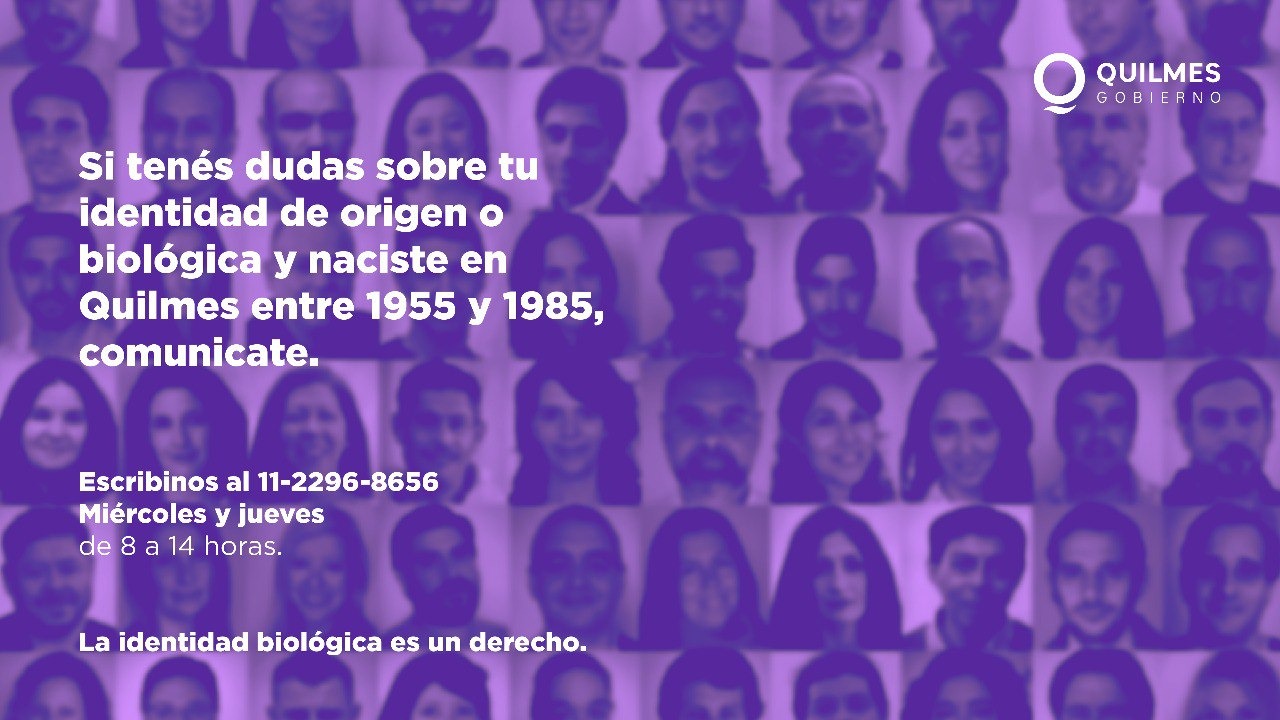 El Municipio de Quilmes, en el marco de la Ley 15.329 “Derecho a la Identidad de Origen”, pone a disposición de la comunidad un servicio de asistencia para aquellas personas nacidas en la ciudad entre los años 1955 y 1985 que tienen dudas sobre tu identidad de origen o biológica.