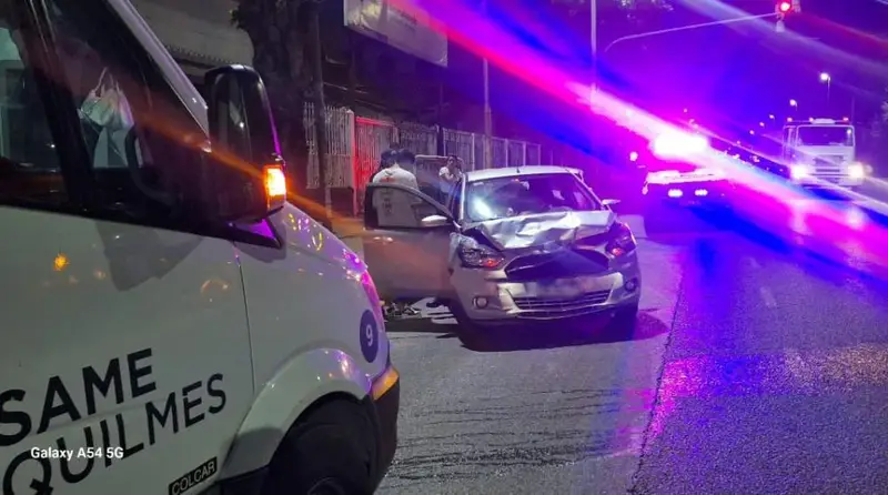 Un violento accidente de tránsito sacudió la madrugada en la intersección de las avenidas Calchaquí y Pellegrini, en Quilmes Oeste, dejando como saldo dos personas heridas leves.